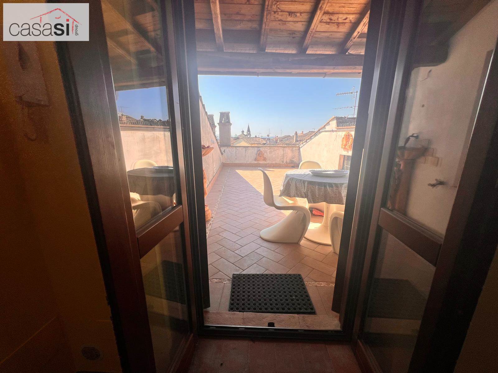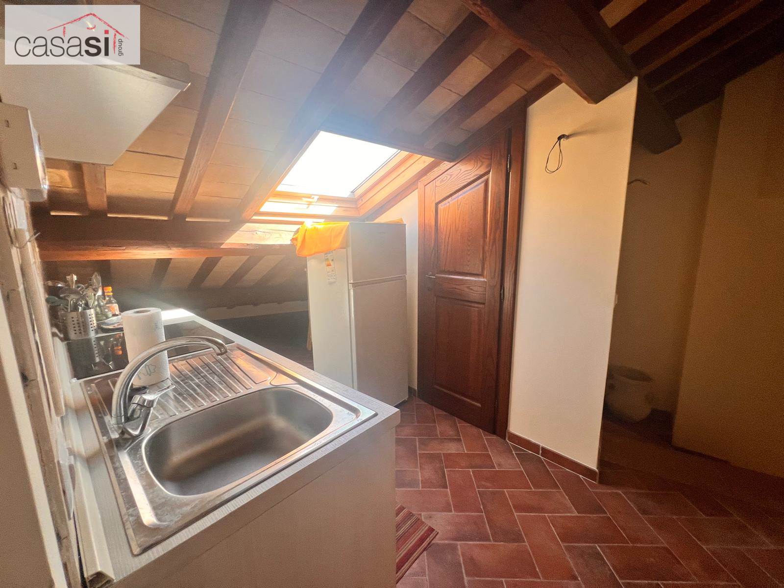 L’immobile è composto da un soggiorno con angolo cottura e caminetto, una camera da letto, un bagno e una splendida terrazza panoramica che offre una vista suggestiva sui tetti del centro storico e sulla Cattedrale.